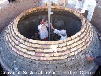 This appears to be a buried masonry dome-type anaerobic digestion system of a type developed historically in China, and India. It is a type of digester no contractor would offer to build as it would not be a feasible form of construction to comply with the EU rules for the protection of groundwater (EU Groundwater Directive). It is also a design which has no method of stirring/ mixing.