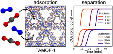 - Breakthrough curve tests track how fast TAMOF-1 fills up with CO2 in real gas flows.